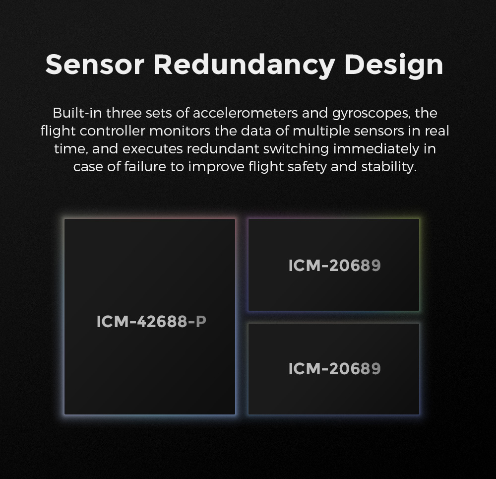 • Triple-redundant IMUs with intelligent fault switching capability.